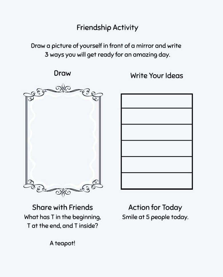 I’m so happy to share Friendship Activities: Raising Happy Kids with Confidence and Character with you. This new Motormouth Mattie companion book was created to help kids build friendship skills in a fun, creative, and screen-free way. Inside, you’ll find engaging activities that encourage children to practice kindness, communication, confidence, empathy, and character. My hope is that this book gives families a simple way to support social growth while also making meaningful memories together.